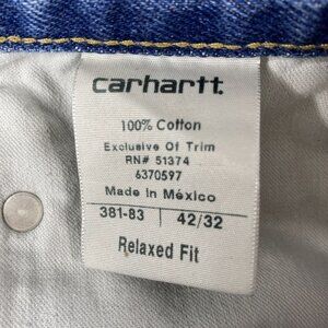 Carhartt Jeans Mens 42x32 actual measurements are 40 x 32 Blue Relaxed Fit Straight Leg 100% Cotton Demin Workwear