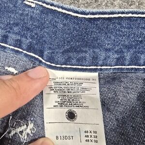 Carhartt Jeans Mens 48x32 Blue Denim Work Dungaree Carpenter Hammer Loop B13DST