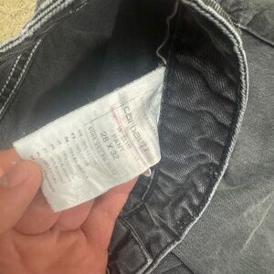 Tags: #CarharttJeans #WorkwearStyle #VintageDenim #SlimFitJeans #BlackWash casual, durable, cotton, streetwear, distressed, faded, utility