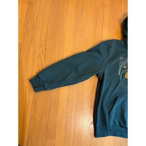 My camera doesn't pick up green well for some reason, but this is a GREEN sweatshirt. The first photo is a stock photo that shows the correct color shade. Please keep that in mind while looking at my photo.