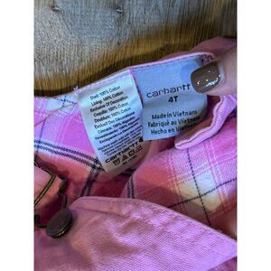 Carhartt Kids Pink Plaid Cotton Lined Overalls 4T Durable Workwear