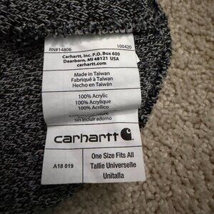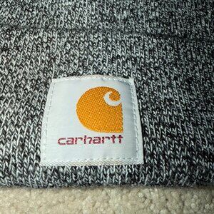 Classic Carhartt gray marl rib-knit cuffed beanie with logo patch. 100% acrylic, warm and durable. Unisex one-size fit. Excellent pre-owned condition.