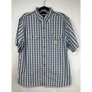 Carhartt Large Loose fit Short Sleeve Button Up Blue/white