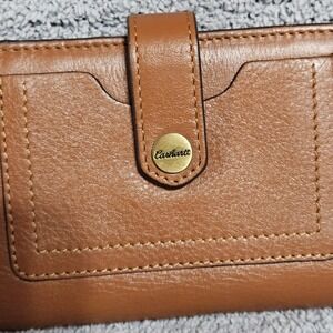 Carhartt Leather Lay Flat Phone Clutch Zip Wristlet Wallet Brown Multi Pockets