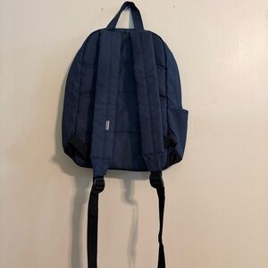 Great condition compact backpack by Carhartt. Would be perfect for a tablet. Has a half pocket on front zipper. There are a couple of small stains? Maybe paint? Very small and might come out. They are pictured along with measurements.