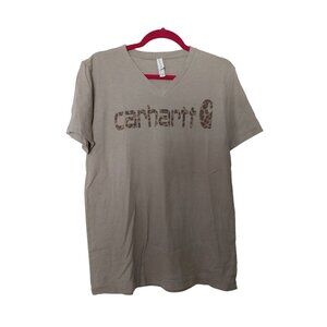 Carhartt Leopard Print Logo V-Neck T-Shirt M Beige