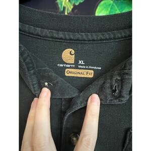Carhartt Long Sleeve Henley Original Loose Fit Pocket Shirt Tee Black Men XL GUC