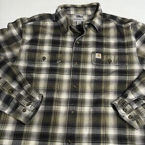 Carhartt Long Sleeve Plaid Button Down Mens Size Medium Heavy Flannel Green