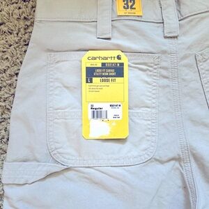 Carhartt Loose Fit Canvas Utility Work Short 10 inch. Inseam Size 32 Regular ,Full Fit through seat and thigh, sits above the waist In Tan Color, Model Number BSO147-M