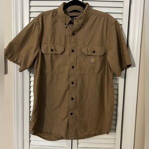 Carhartt Loose Fit Chambray Midweight Short Sleeve Tan Button Up Shirt
