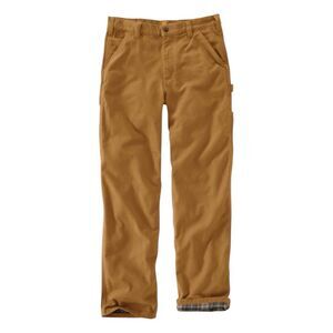 Carhartt Men's Loose Fit High-Rise Washed Duck Work Dungaree Pants in Carhartt Brown offer legendary durability, to get the job done. A relaxed fit maintains enough room in the seat and thighs for easy movement. The straight leg fits easily over boots, and the ringspun washed duck provides added comfort, from the first wearing. And, with heavy-hauling, reinforced back pockets, multiple tool pockets, a hammer loop, and strong, sewn-on-seam belt loops, these work pants provide all room you'll need to carry your tools.