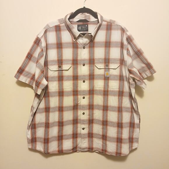 Carhartt Loose Fit Shirt Blue Short Sleeve Button Down Men's Size 2XL