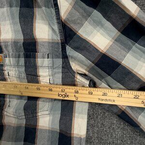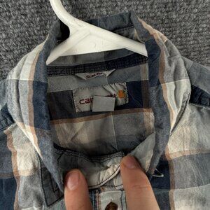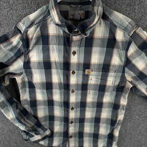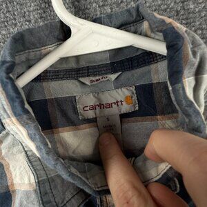 Carhartt Men Long Sleeve Blue Beige Plaid Button Up Shirt Small Slim Fit Adult