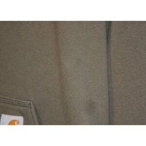 The Carhartt Men's 2XL Original Fit Pullover Midweight Hooded Sweatshirt is a durable and stylish option for colder weather. Made from a cotton blend with fleece fabric, this green sweatshirt features a solid color with a lace-up closure and a hood for added warmth. The Carhartt logo accents the classic pullover style, making it suitable for outdoor activities like hiking or gym training. Perfect for winter, fall, or spring, this hooded sweatshirt is a versatile addition to any man's wardrobe. In excellent used condition with regular signs of use. No rips, holes, tears, or stains (see photos).