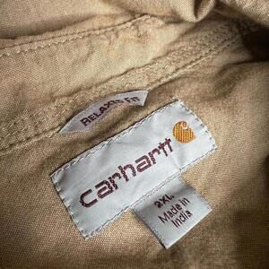 Carhartt Men’s 2XL Regular Relaxed Fit Button-Up Work Shirt Beige Tan Long