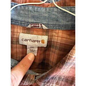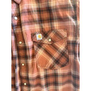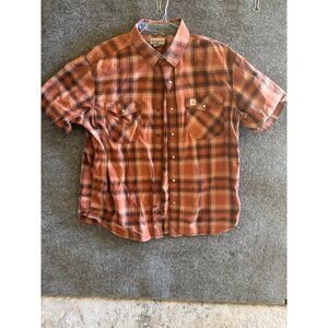 Carhartt Mens 2XL Relaxed Fit Plaid Short-Sleeve Button-Up Shirt Orange/Brown