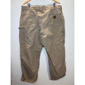 Carhartt Men's 40x30 Beige Work Pants Distressed Carpenter Dungaree Fit