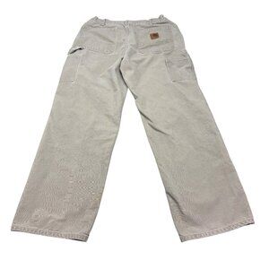 Carhartt Mens Beige Work Pants 34x32 Cotton Canvas Distressed Stains Utility
