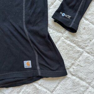 Details: Cut the morning chill with this men's thermal shirt. This base layer top was designed to keep you warm and comfortable in any time of year. It's made of sweat-wicking fabric that's cut to give your arms a full range of motion and fight odors. Perfect for layering when you need extra protection from those cold weather days. 6-ounce, 100% Polyester Waffle-Knit. Midweight, Carhartt Force Base Layer. Built with Force FastDry technology to wick sweat and dry fast. Built to move with Rugged Flex stretch technology. Fights Odors. Smooth Flatlock seams and tagless label for comfort. Concealed thumb loop.