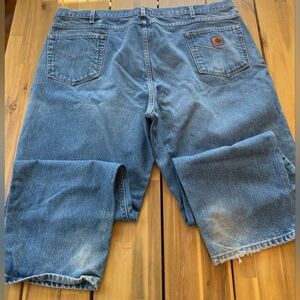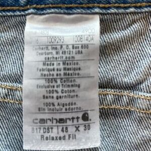excellent preowned condition Carhartt Mens Blue Denim Relaxed Jeans Classic Style Size 48 X 30. Experience the perfect blend of comfort and style with these Carhartt blue relaxed jeans. Crafted from durable denim, they feature a classic medium blue wash with a natural fade for a timeless look. Ideal for casual outings, these jeans offer a relaxed fit that ensures all-day comfort.