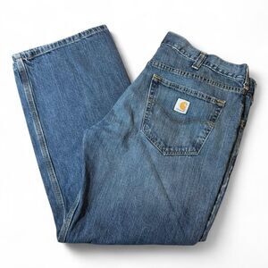 Carhartt Men’s blue denim straight leg, relaxed fit work jeans #denim 38x30