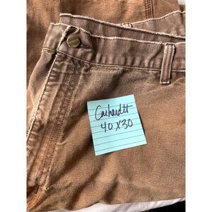Carhartt Mens Brown Distressed Work Pants Size 40x30 Cotton Blend Durable Constr