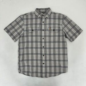 Carhartt Mens Button Down Shirt Size M Gray Plaid Original Fit Short Sleeve