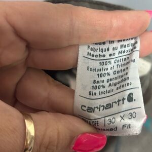 Durable Carhartt cargo pants. Olive color with multiple pockets. Ideal for work or casual wear. Some stains but plenty of life left in them