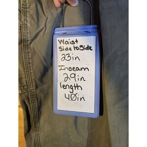 These Carhartt Mens Cargo Pocket Carpenter Work Green Canvas Pants in size 44 x 30 are perfect for casual or workwear occasions. The high-rise design with a zip closure and relaxed fit offers comfort and functionality. Made from durable canvas fabric, these pants feature a cargo pocket for added convenience. The straight leg style and solid green color make them a versatile choice for any season. Machine washable for easy care, these pants are a reliable option for those in need of practical and reliable workwear.wear on bottom of pant leg,spots