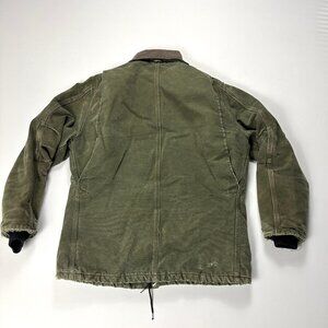 Carhartt Mens Duck Canvas Jacket Green Sz L Corduroy Collar Distressed Thrashed