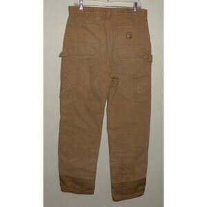 Carhartt Mens Fleece Lined Canvas Carpenter Pants 32 x 34 Dble Knee Brown Stains