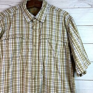In great Condition. Multicolored plaid button down shirt. Short sleeve. Relaxed fit. Cotton blend. Style #101549 253. Refer to pictures for measurements. From smoke-free/pet-free home.