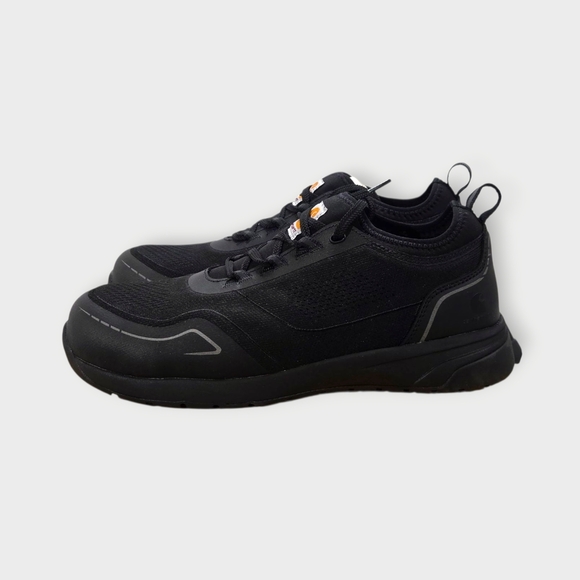 The Carhartt Men's Force Nano Composite Toe Work Shoe FA3495-M in size 10.5W is a durable and comfortable boot designed for workwear occasions. With a round toe shape and low heel height, this black boot features a lightweight mesh upper material for breathability and moisture-wicking properties. The composite toe provides safety and protection, while the non-slip sole ensures stability and traction. This Carhartt boot combines style and functionality for the modern man looking for a reliable work shoe.