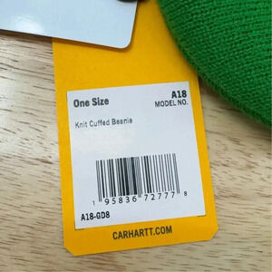 Stay warm and stylish with this NWT Carhartt Men's Holly Green Knitted Cuffed Watch Beanie (A18). Crafted from soft and durable acrylic yarn, this beanie offers a cozy fit, perfect for cold weather. The classic cuffed design ensures a snug and comfortable feel, while the bold holly green color adds a pop of color to your winter wardrobe. Whether you're braving the elements or just looking to add a stylish accessory, this Carhartt beanie is both functional and fashionable.