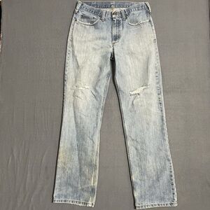 Carhartt Mens Jeans 32x34 Straight Leg Blue Relaxed Fit Light Wash FLAWS