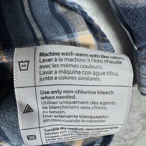 Classic Carhartt men’s plaid button-up shirt in blue and tan tones. Long sleeve, durable construction, and chest pocket. Great for layering, casual wear, or work. Pre-owned in good condition with one small faint spot (see photos). Clean and ready to wear — ships fast from SAVY.