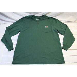 Carhartt Men's L Green Henley Loose Fit Long Sleeve Shirt Pocket LOGO