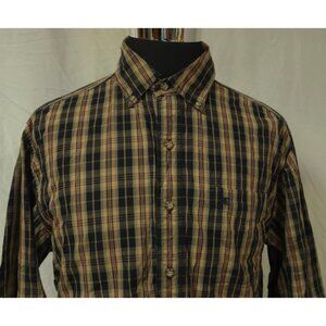 Carhartt Mens Large Black Tan Plaid Button Down Long Sleeve Logo Work Shirt S218