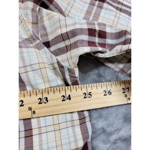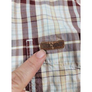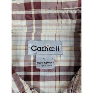 Carhartt Mens Large Button Up Shirt burgundy maroon Plaid Short Sleeve