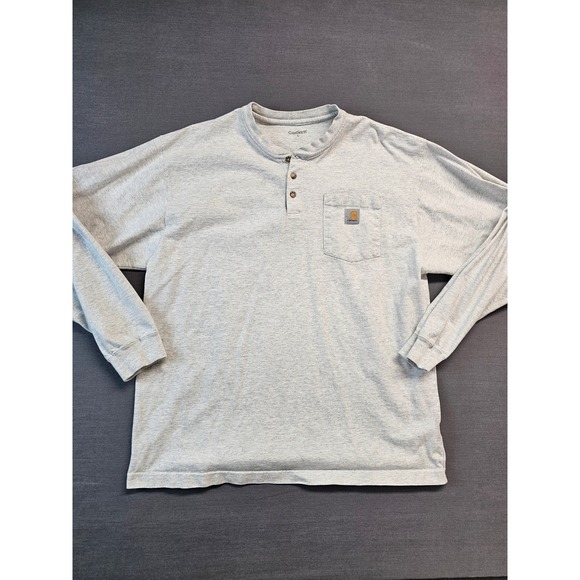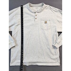 Carhartt Mens Long Sleeve Henley T Shirt Pocket Gray Size L Cotton Blend