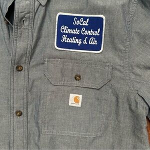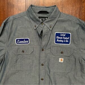 Carhartt Men's “Loose Fit” Blue Work Shirt, Lots of Patches, Size Large