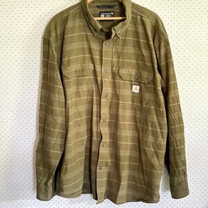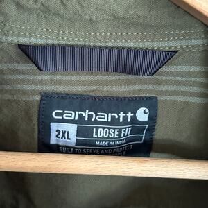 Carhartt Mens Loose Fit Midweight Long Sleeve Shirt. Button Down. Olive green stripe. Excellent condition. Size XXL.