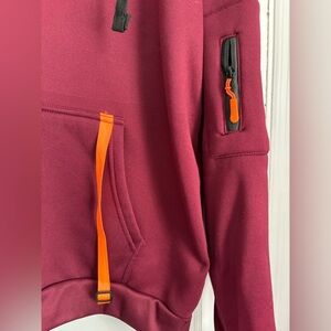 1/4 zipper, workwear, casual, sleeves pockets, rib cuff, kangaroo pocket and waist, logo in chest,