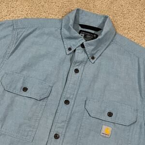 Carhartt Mens Midweight Chambray Short Sleeve Shirt Celi Blue Size Medium