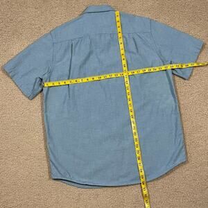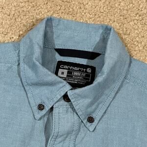 Carhartt Mens Midweight Chambray Short Sleeve Shirt Celi Blue Size Medium. Please see all images closely for condition. If the item has any flaws they will be pointed out in the images. Measurements are provided as tags are not always accurate.