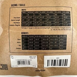 Carhartt Mens NEW Force Midweight Waffle Base Layer Pant Size XXXL Tall Black