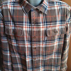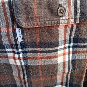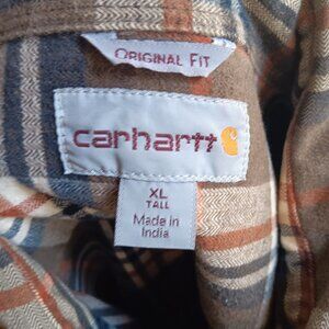 Carhartt Mens Original Fit XL Tall Plaid Flannel Button-Down Shirt Brown 101749