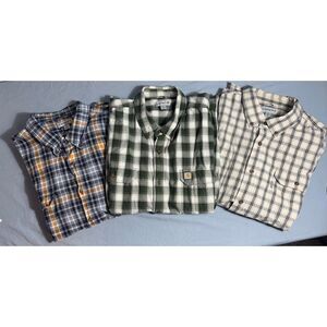 Carhartt Men's Plaid Relaxed Fit Short Sleeve Size 3XL Lot of 3 White Blue Green