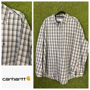 Carhartt Mens Plaid Work Shirt Cotton Heavy Duty Button Down Size 2XL