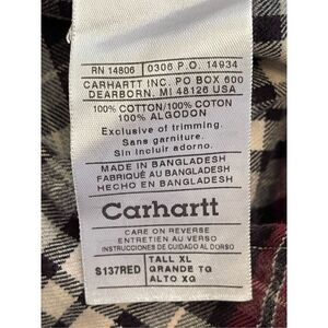 Carhartt Mens Red Plaid Long Sleeve Pocket Western Button Down Shirt XL Tall